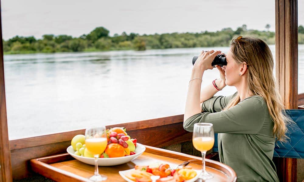 As every bird lover will know, the time of day is a crucial factor when deciding to go birdwatching. That’s why we offer a morning Birdwatching Cruise which promises magnificent sightings of birds awakening as the dawn of a new day begins over the calm waters of the Zambezi River. While board our Birdwatching Cruise, enjoy a selection of delicious teas, coffees and freshly baked croissants, while keeping an eye out for the rich assortment of birdlife flying around you.