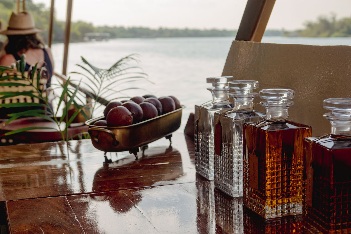 Here, champagne service and gourmet dining are coupled with spectacular wildlife viewing. Our dedicated and knowledgeable staff will ensure the most luxurious experience onboard, while our chef onboard prepares 4 courses of snacks fresh from our on-board galley. The menu is aimed towards lighter, Mediterranean, and Asian influence to suit our warm year-round climate. Dedicated bars on both decks ensure guests receive the attention they deserve as they drift leisurely along the river.