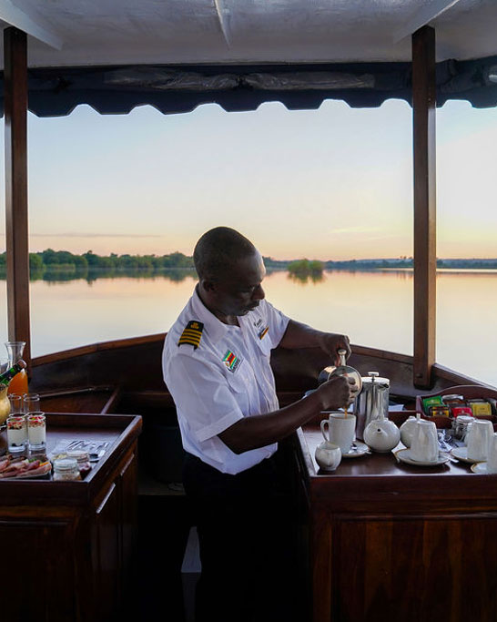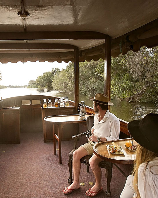 Champagne on arrival sets the tone for the cruise and the old-world charm and service sets The River Odyssey apart. Discover Victoria Falls’ luxury river cruise experience aboard the double-decked River Odyssey.